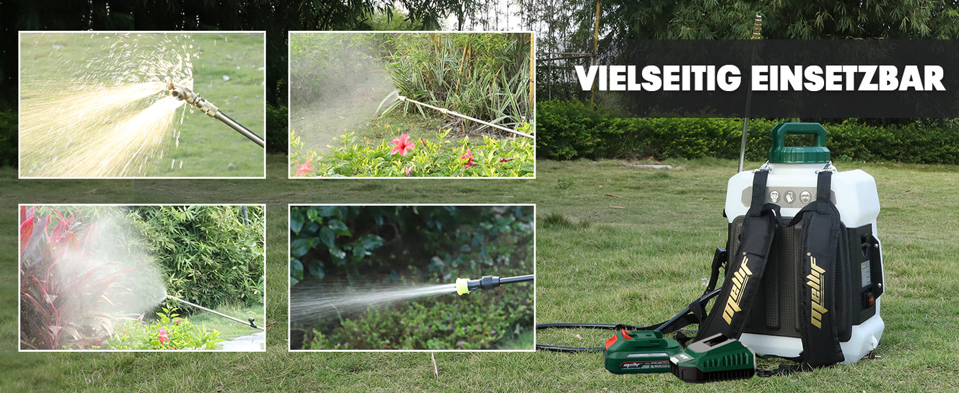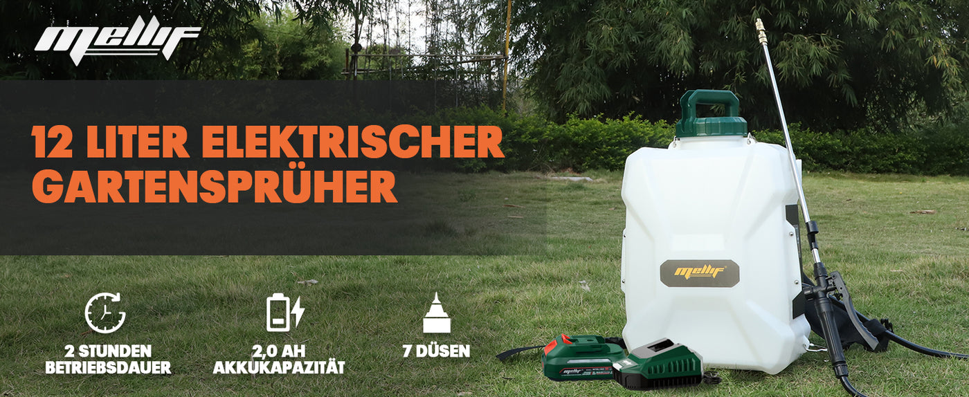 - Lieferumfang: 12Liter Drucksprüher, Mellif 2,0 Ah Akku, 2,0A Ladegerät, Schultergurt
