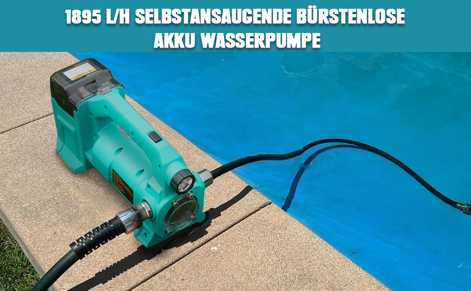 - Bürstenloser Motor fördert bis zu 1895 L/h, Ansaughöhe 1,83 m, Förderhöhe 18,29 m